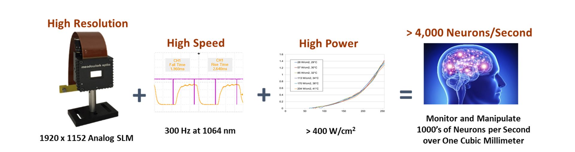 Meadowlark Optics SLMs use custom backplanes, and proprietary drive schemes to achieve response times down to 1 ms (wavelength dependent). Most other liquid crystal spatial light modulators utilize display backplanes built with standard Nematic liquid crystal, limiting response time to >30 ms.