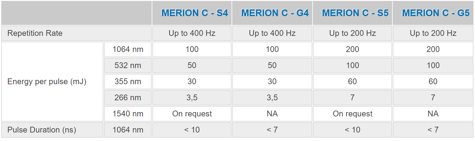 Deze nieuwe DPSS laser “Merion-C” levert 100 mJ pulsen bij 1064 nm en bij repetitiefrequenties tot 400 Hz. Verder zijn harmonische generatoren beschikbaar om golflengten tot 266 nm te genereren. Zo kan de Merion-C ingezet worden voor tal van toepassingen zoals LIDAR, LIBS of material processing.